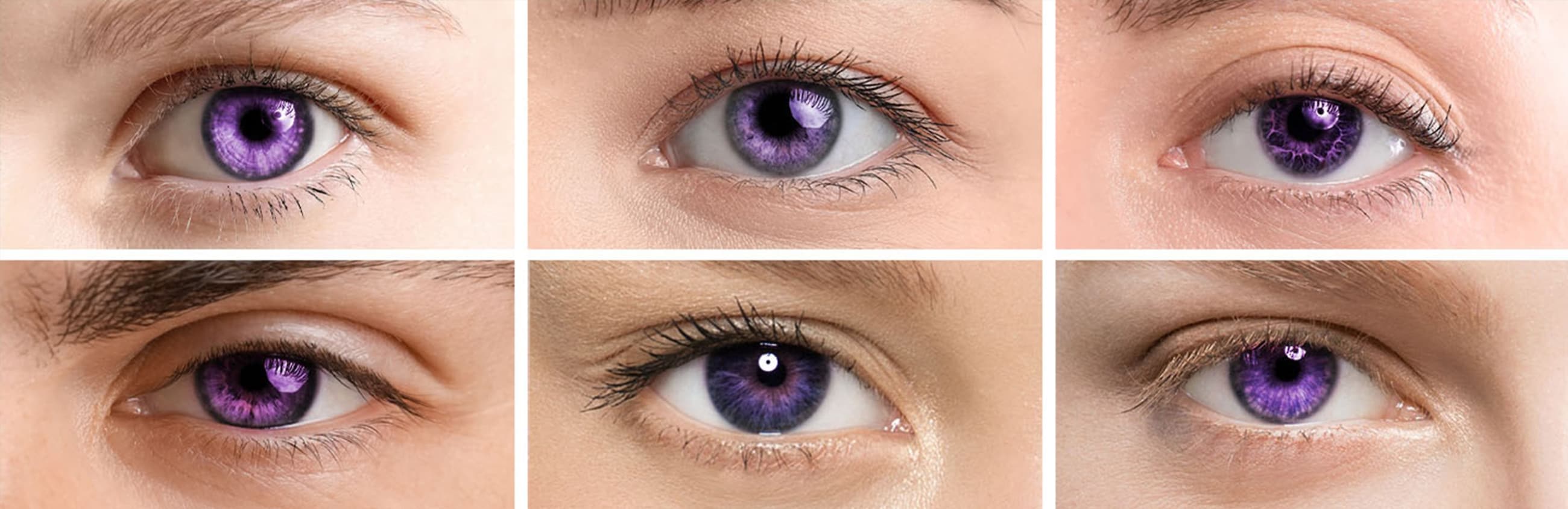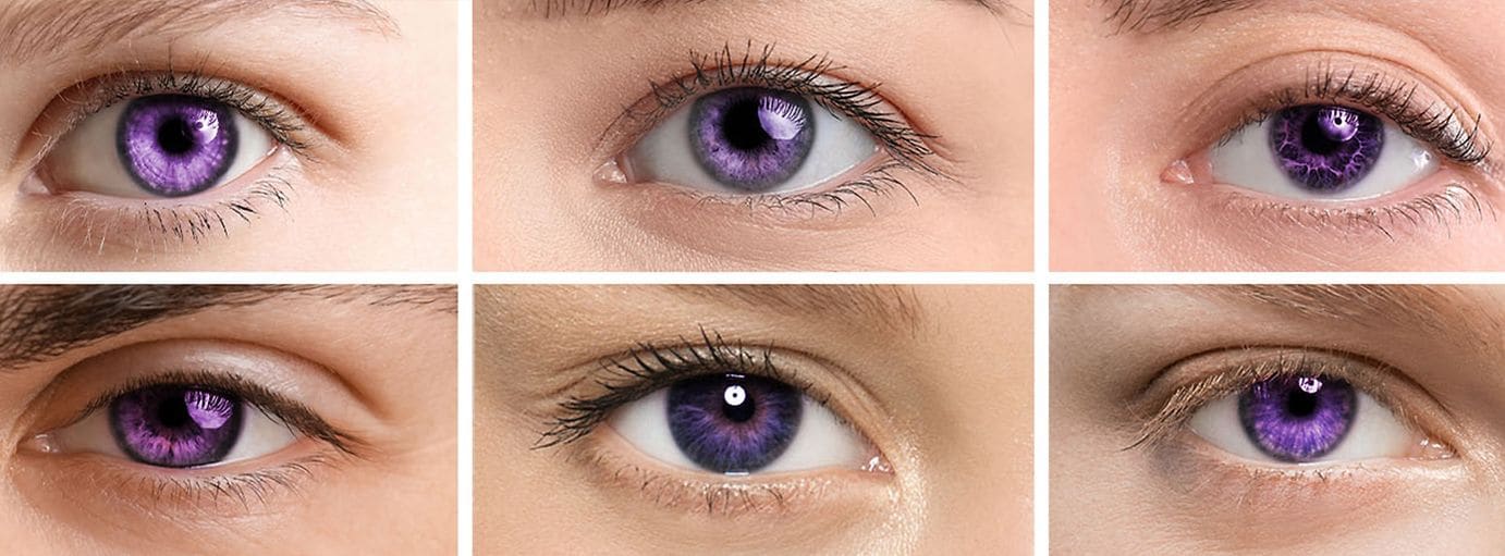 Le lenti a contatto viola (o lentine viola) sono lenti colorate che danno un aspetto violaceo alla tua iride. Sono perfette per trasformare tonalità chiare come l’azzurro o il grigio in un viola luminoso, oppure per dare una tinta di viola agli occhi di colore scuro. Infatti, sono tanti ad usare le lenti a contatto viola su occhi marroni.